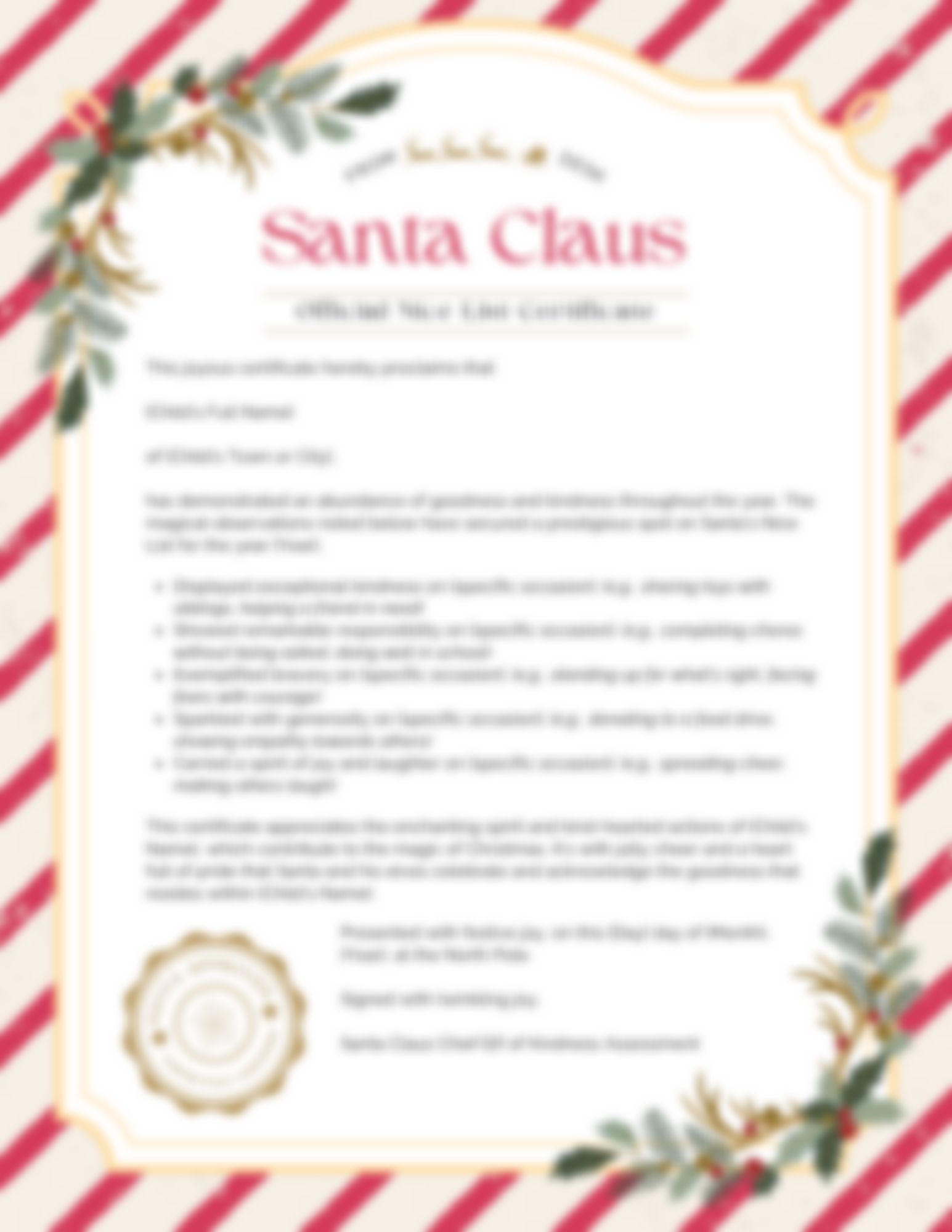 Digital Download of Customizable Santa Nice List Certificate