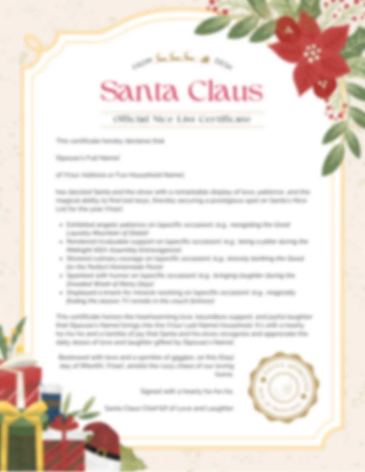 Digital Download of customizable Nice List Santa Certificate for adults